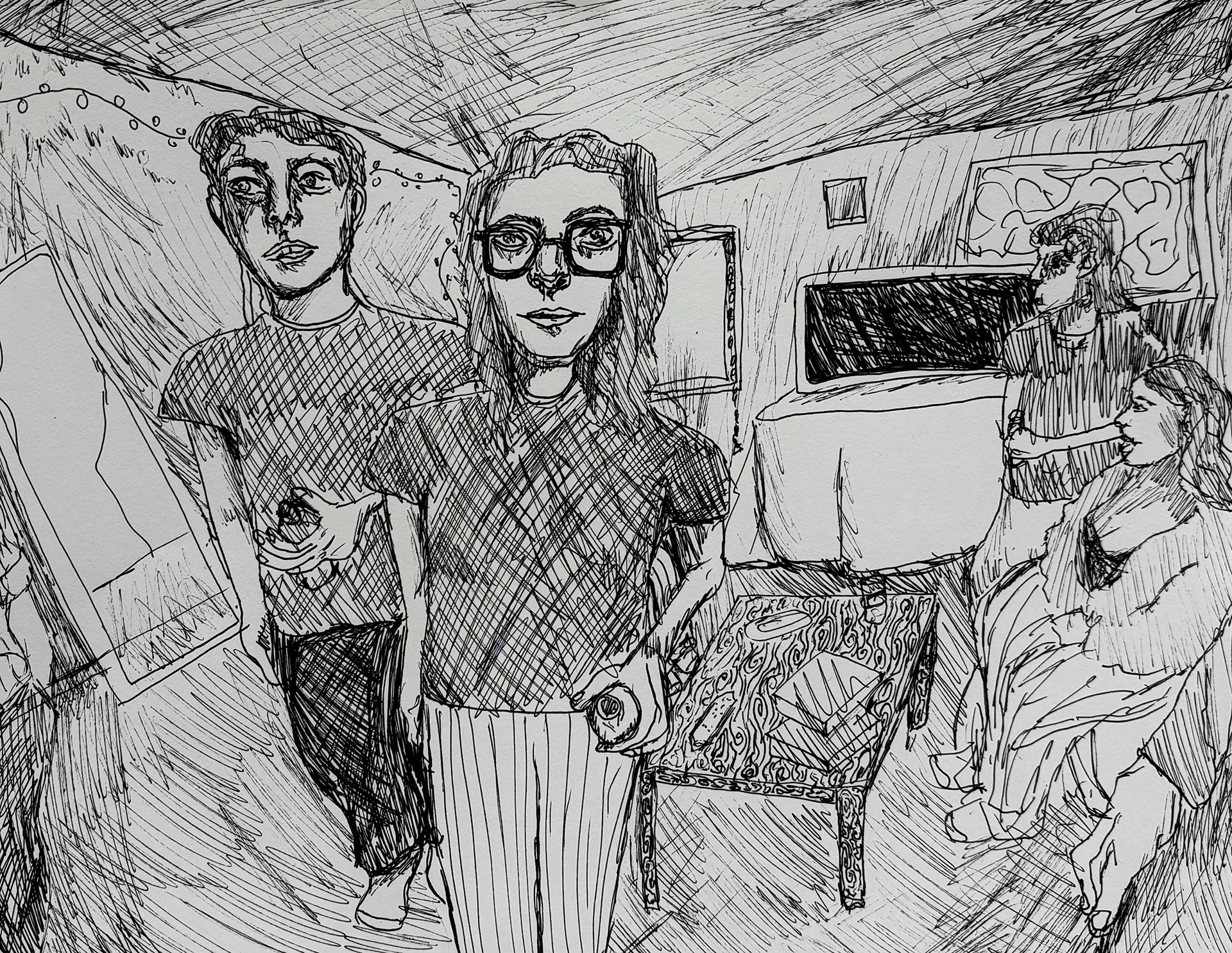 "in my friend's apartment" 2024, pen on paper, 9.7"x12"