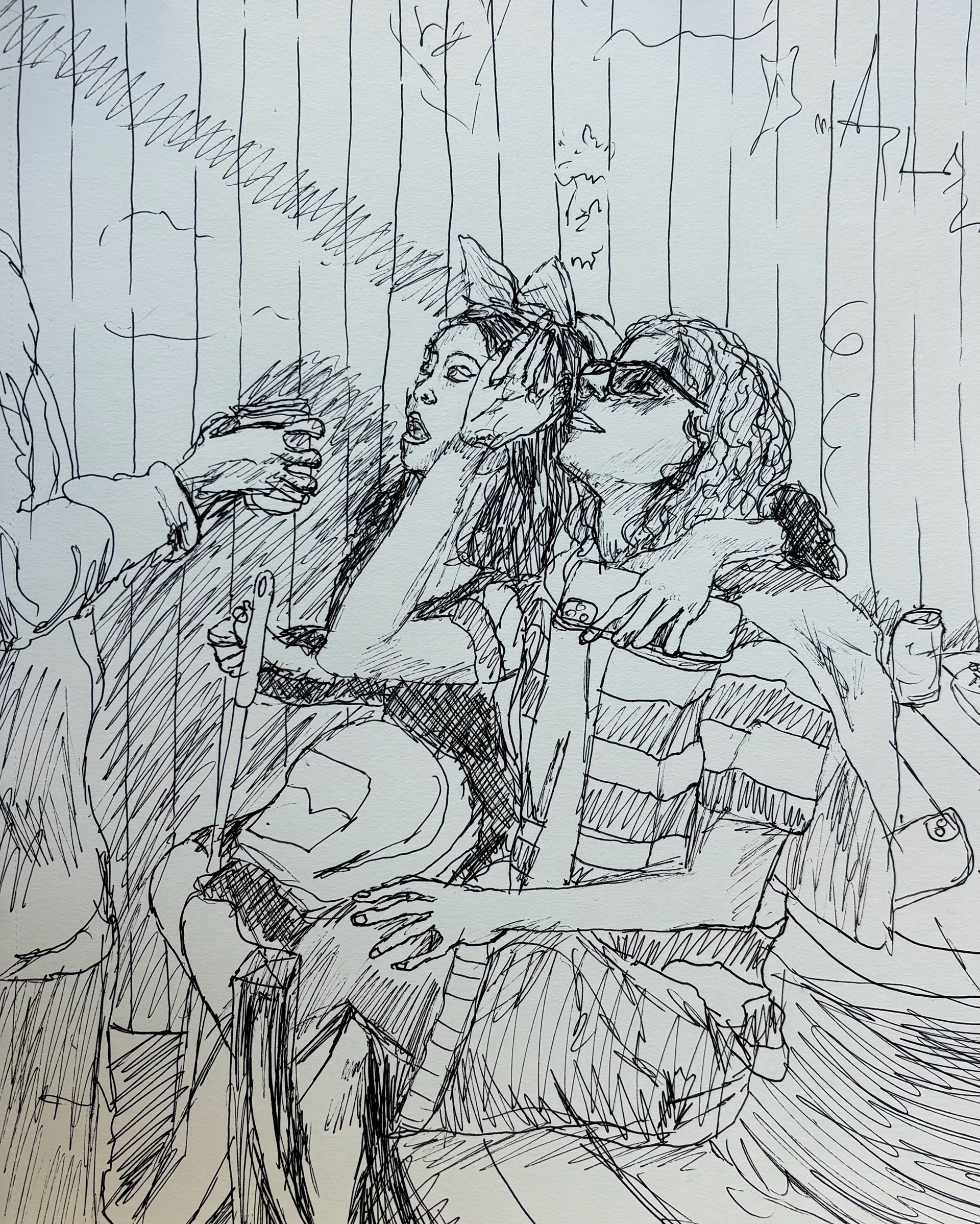 "hallie and haeyeon" 2024, pen on paper, 12"x9.7"