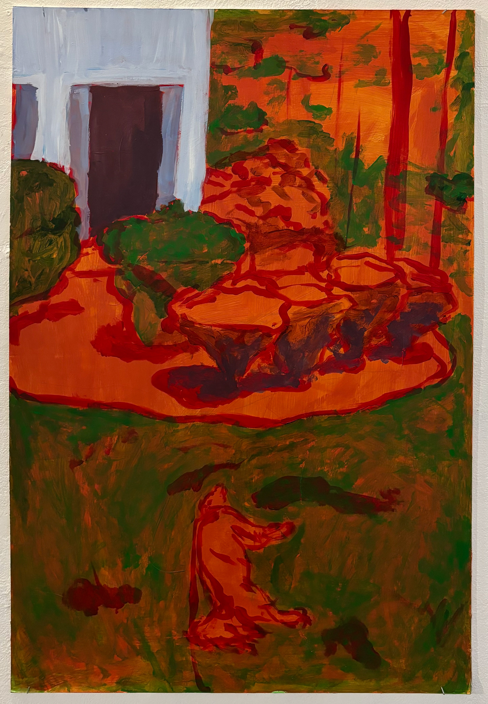 "lost to tall grass and window sills" 2024, acrylic on masonite, 36"x24"