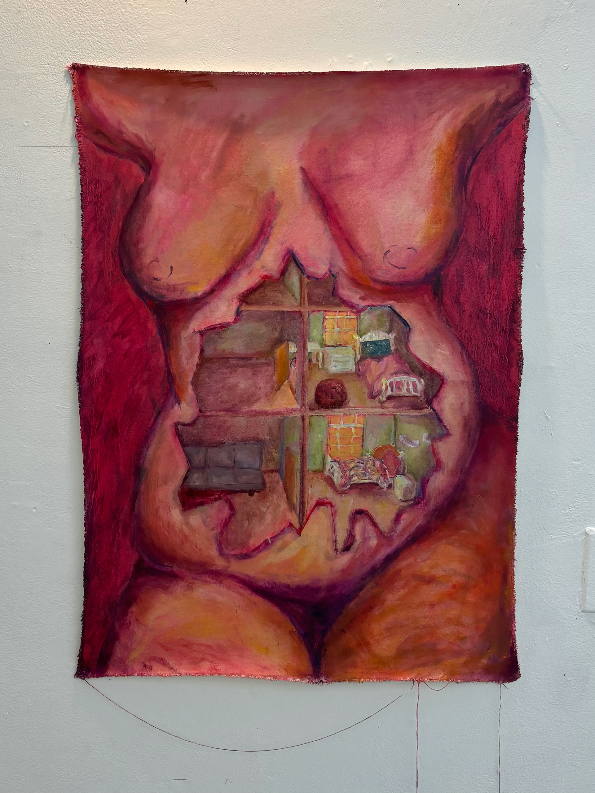 "this is what’s in my stomach" 2025, acrylic on muslin, 3’ x 2’