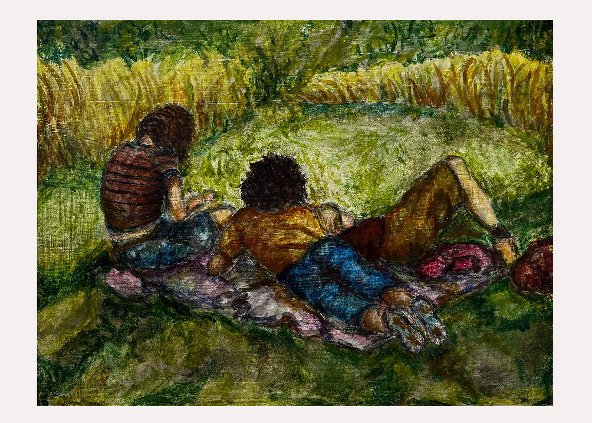 "For a moment, I remember" 2024, oil paint and oil pastel on stretched canvas, 36"x55"